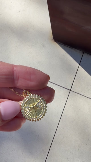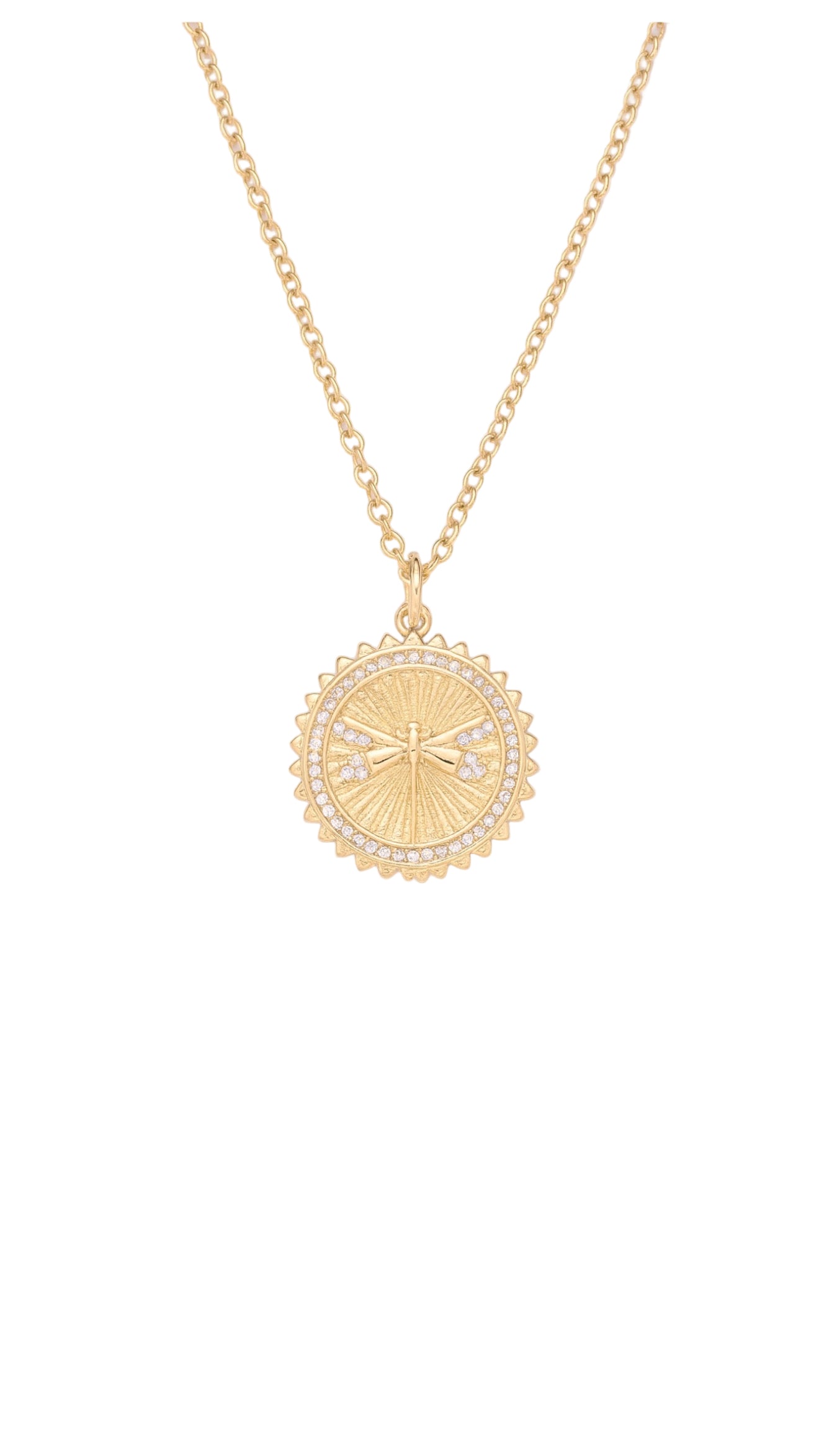 Round Coin Pendant with Dragonfly and Surrounding CZs