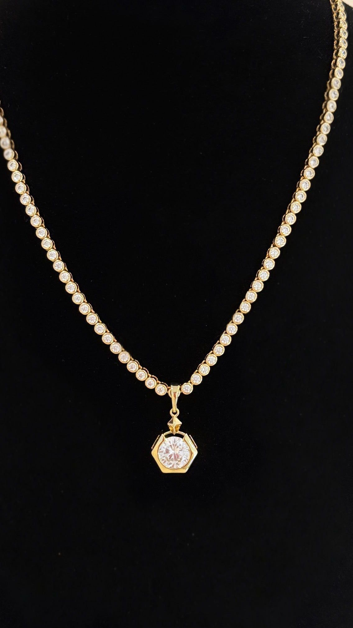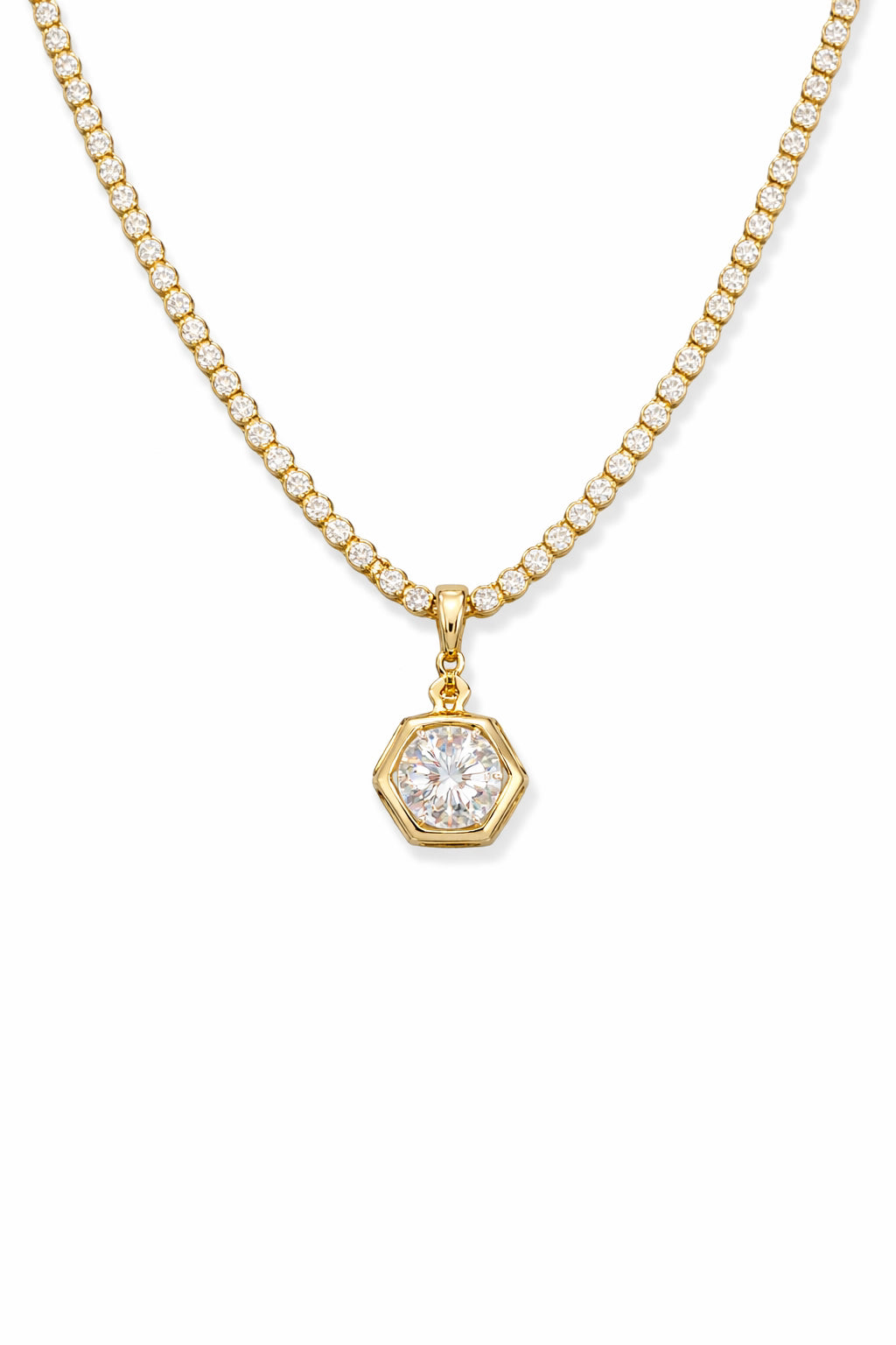 18k Gold Filled Art Deco Inspired Hexagon Bezel Pendant  (Removable)